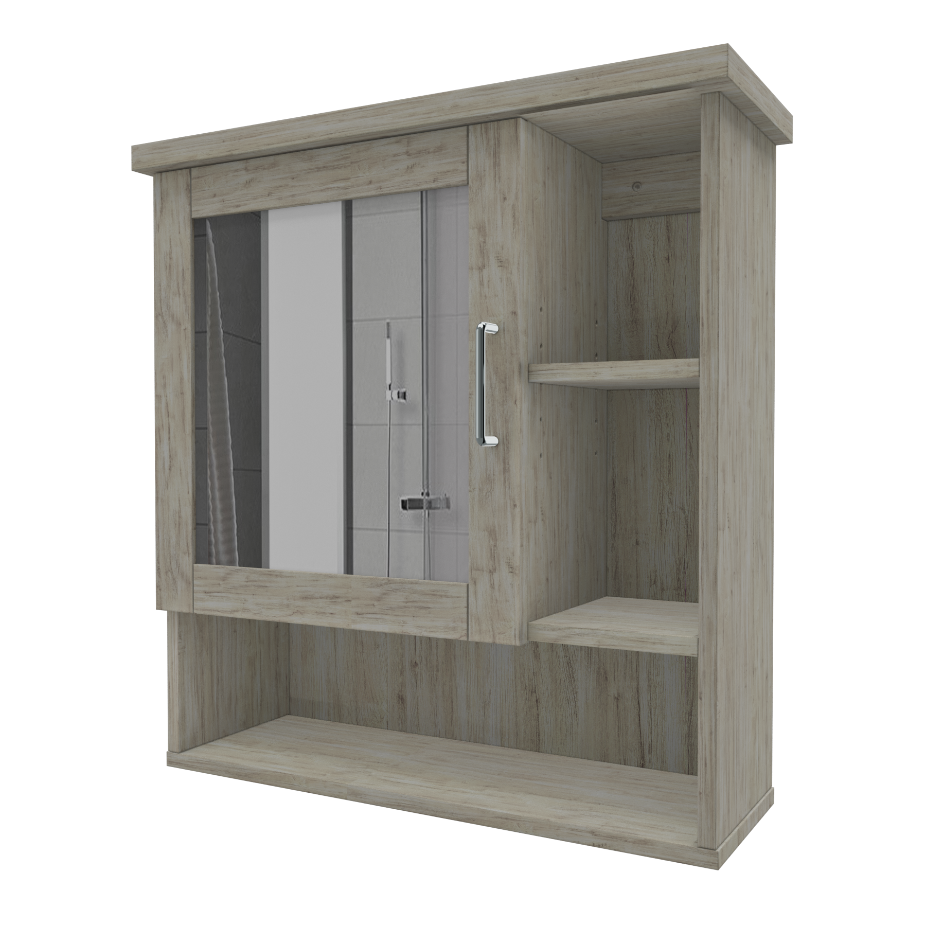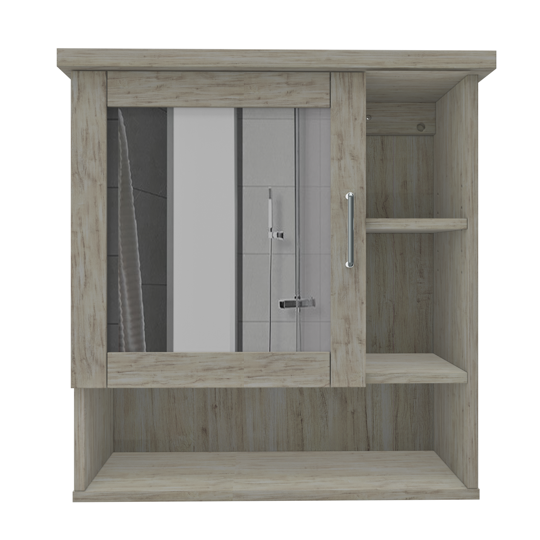 • 🪞 Mirror-fronted swing door for concealed storage