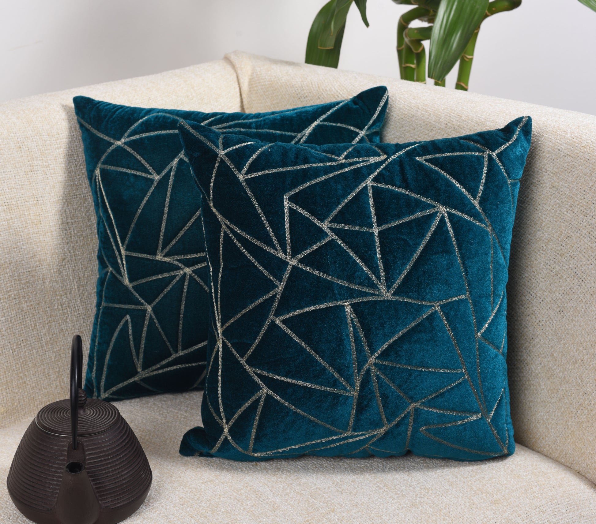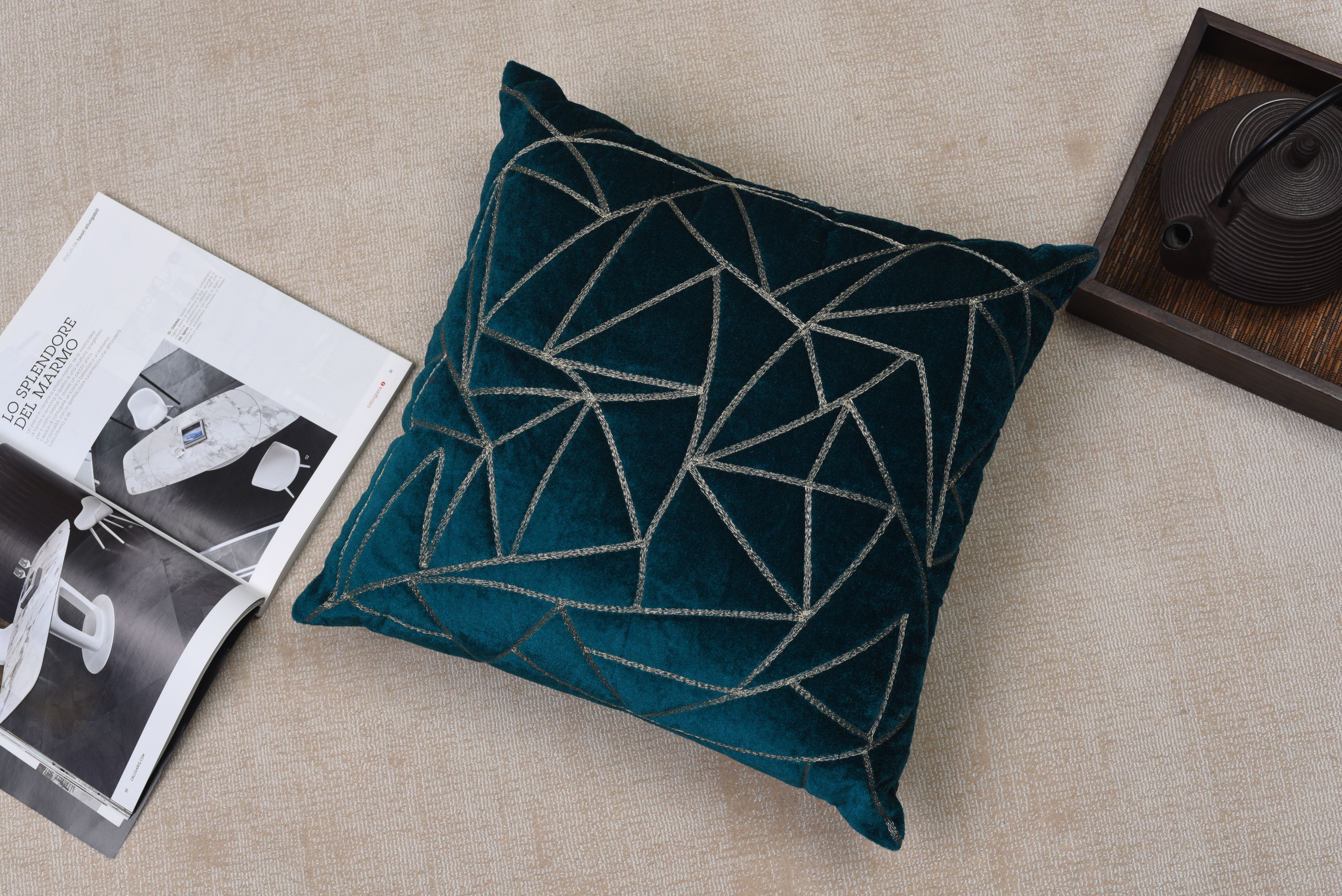 Con un atrevido giro geométrico, nuestra Funda de Cojín con Triángulos aporta un toque de arte abstracto a tu espacio. El patrón de triángulos entrelazados crea un ritmo contemporáneo, ideal para quienes aprecian las líneas limpias y el diseño moderno. Con tonos tierra intensos y detalles metálicos en el bordado, esta funda es un homenaje elegante al diseño artesanal contemporáneo.