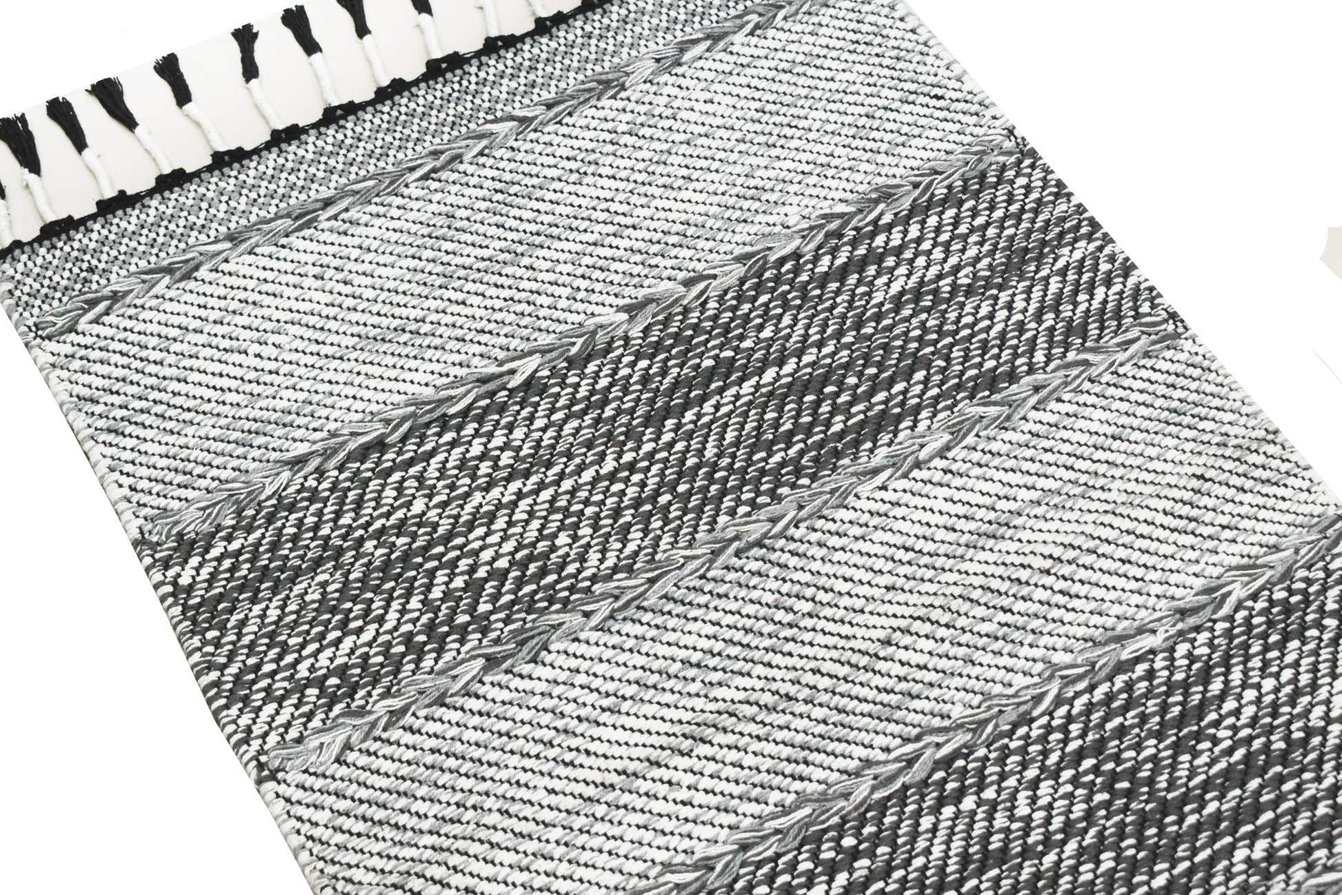 Alfombra de Algodón con Patrón de Diamante – Borde y Flecos