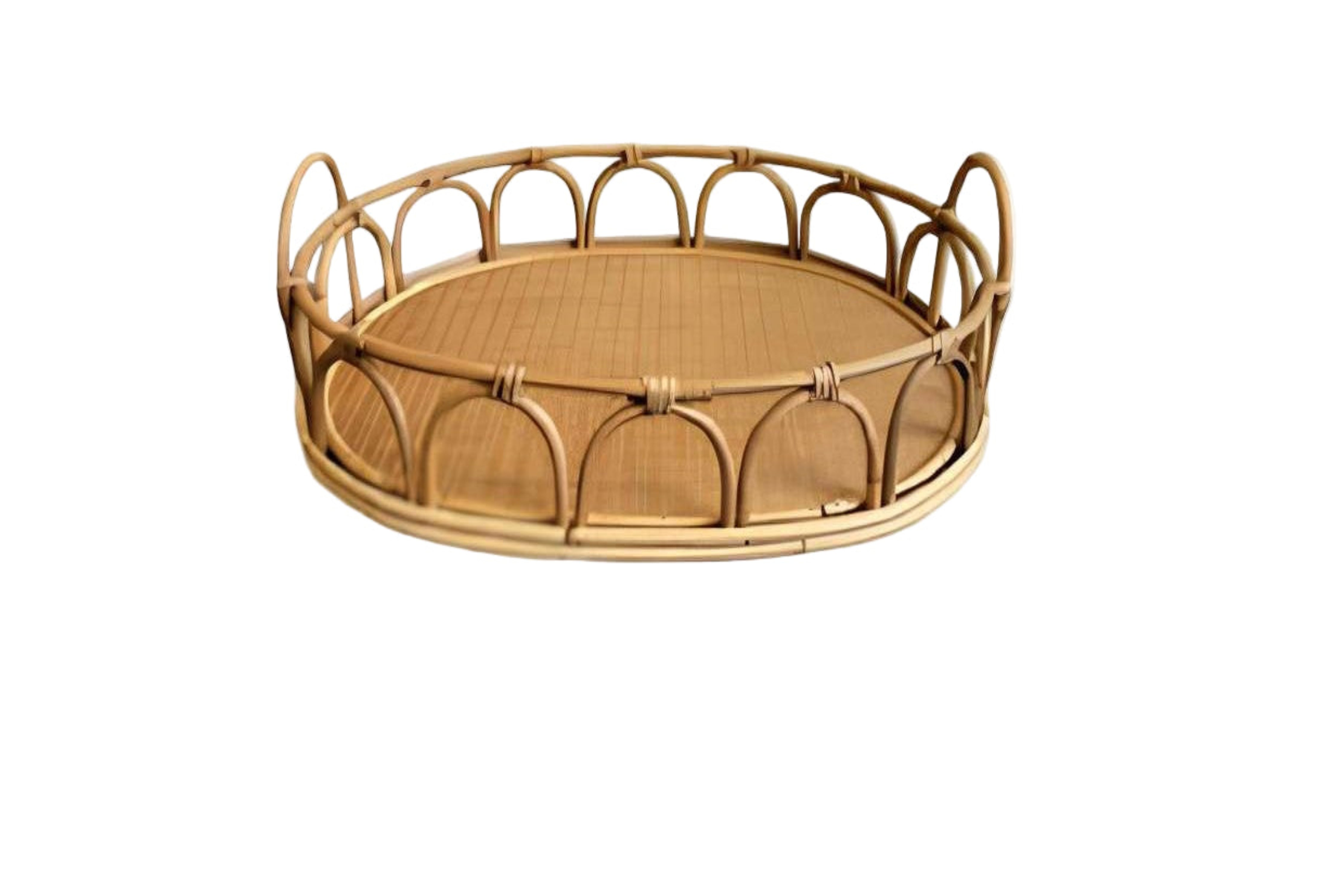 Un acento atemporal para tu mesa, la Bandeja Decorativa Redonda de Ratán combina funcionalidad con el encanto costero. Su marco curvado y base tejida la convierten en la pieza perfecta para servir, organizar o decorar con facilidad.