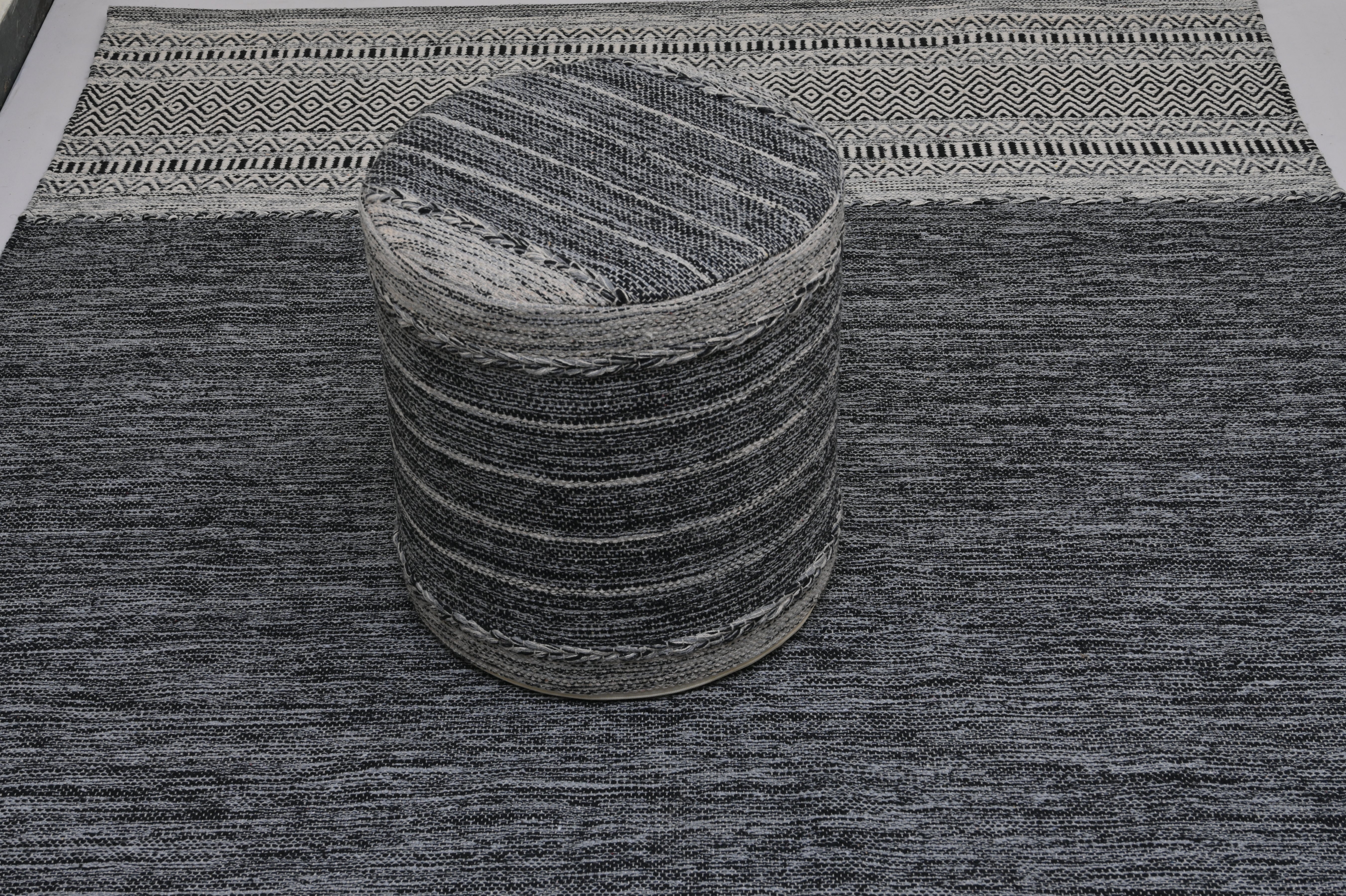 Aporta un toque atemporal a tu hogar con el Puff Kilim de Algodón Tejido a Mano en Gris Oscuro. Meticulosamente elaborado por artesanos, este puff refleja la belleza rústica del tejido kilim mientras ofrece un acento funcional y versátil para interiores modernos. Su tono gris oscuro combina fácilmente con paletas neutras, convirtiéndolo en una pieza elegante que equilibra la tradición con el estilo contemporáneo.