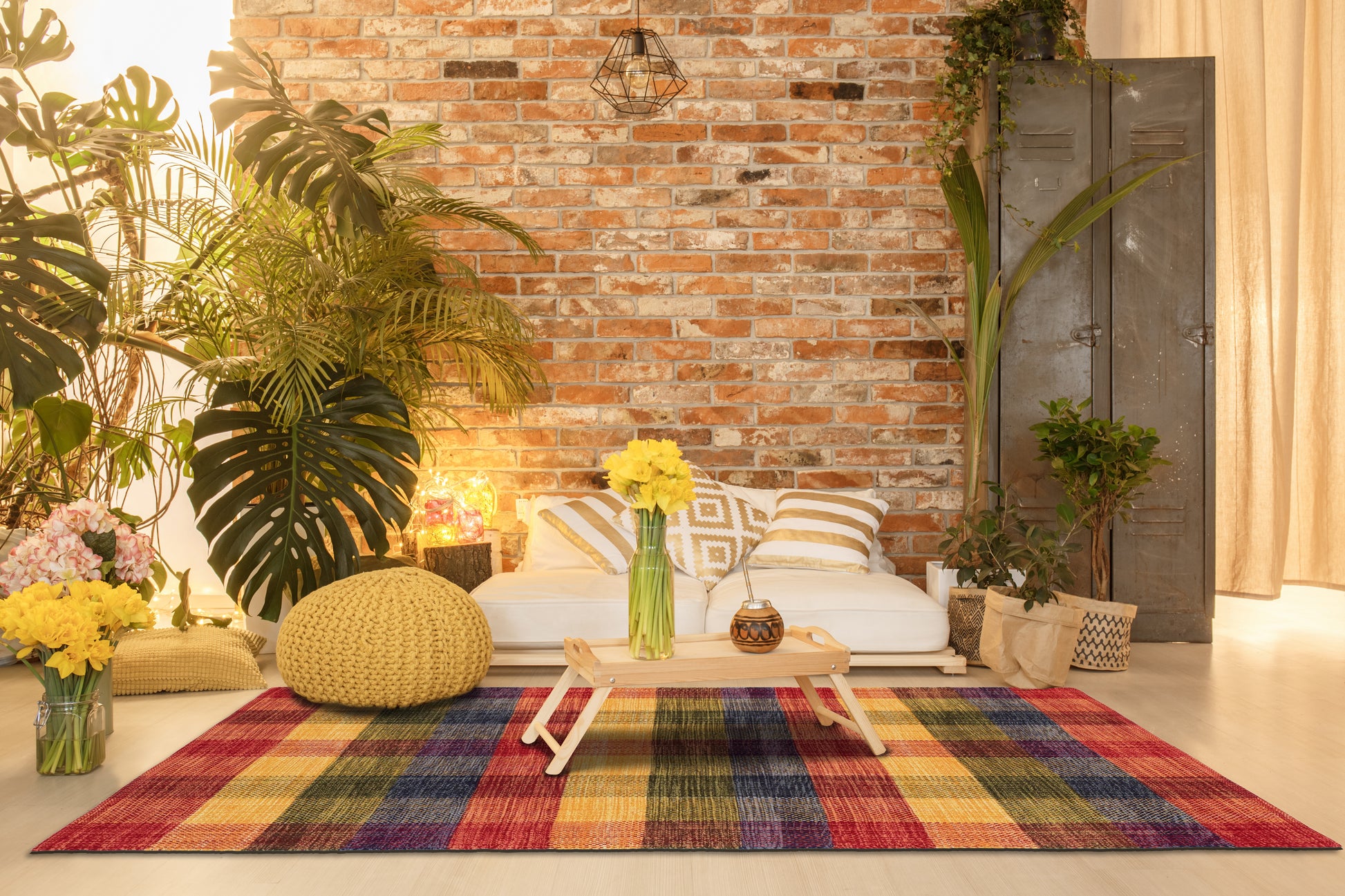 Entra a un mundo lleno de color y personalidad con la Alfombra de Algodón Tejida a Mano con Diseño de Cuadros. Diseñada para romper con la monotonía, esta alfombra llena tu espacio de una mezcla vibrante de tonos que reflejan una profunda tradición textil.
