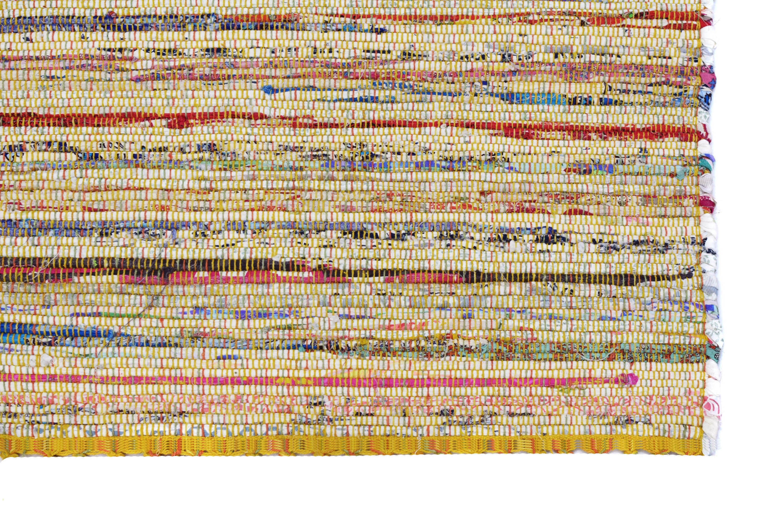 Vibrante y sostenible, la Alfombra Chindi Estampada Amarilla con Borde celebra la tradición textil reciclada de la India. Tejida a mano con retazos de algodón reciclado en tonos amarillos soleados y rematada con un borde resistente, cada pieza aporta calidez y carácter artesanal a tu hogar—ideal para interiores llenos de energía y conciencia.