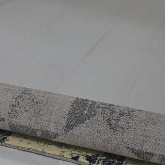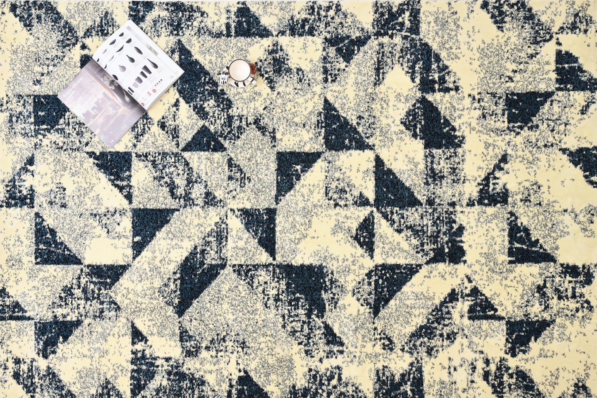 La Alfombra Moderna Geométrica – Crema y Negro fusiona el minimalismo con patrones llamativos, creando un contraste dinámico que resalta en cualquier ambiente. Confeccionada a máquina con una resistente mezcla de poliéster, yute y algodón, esta alfombra presenta un diseño geométrico moderno con texturas desgastadas que aportan movimiento y profundidad visual.
