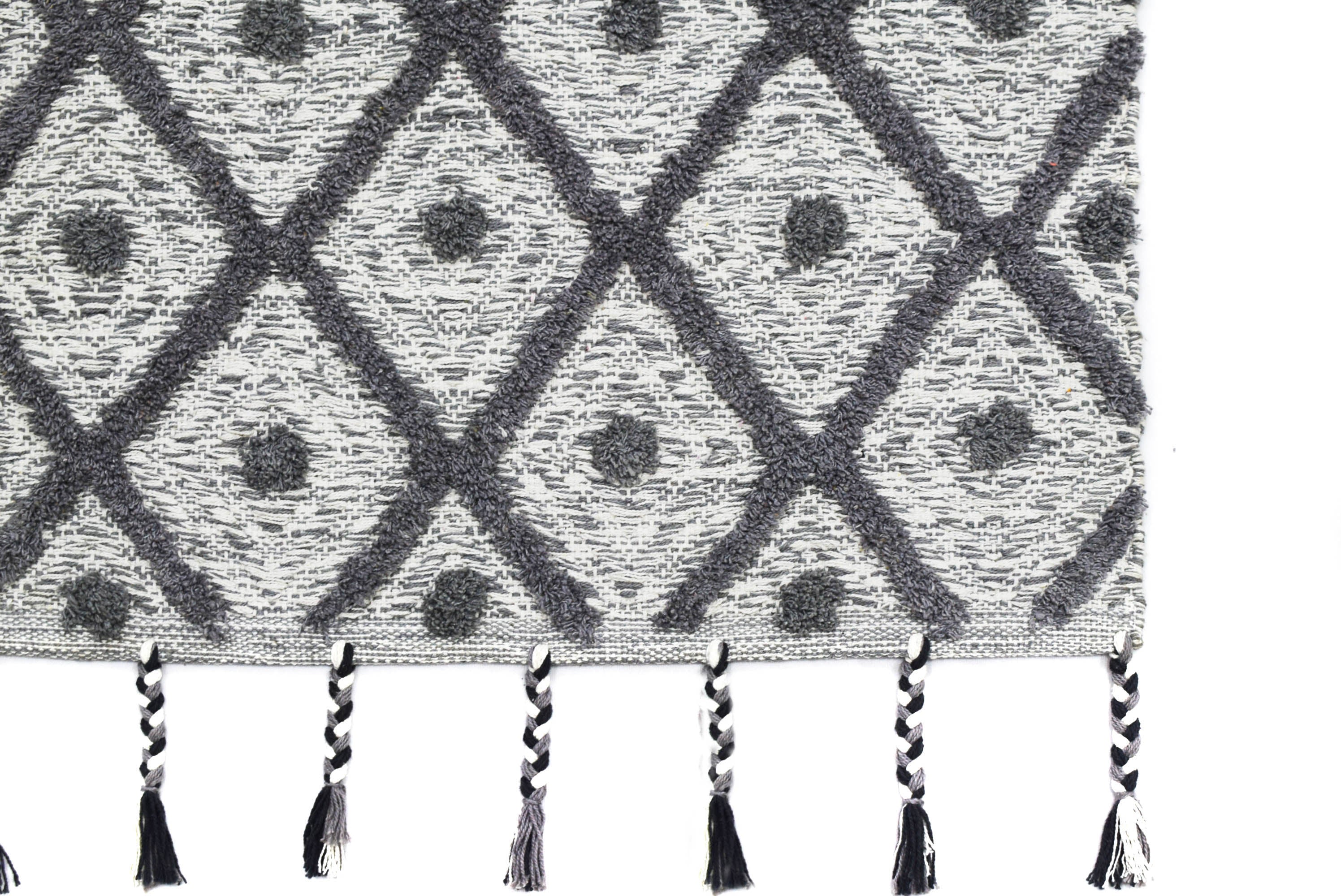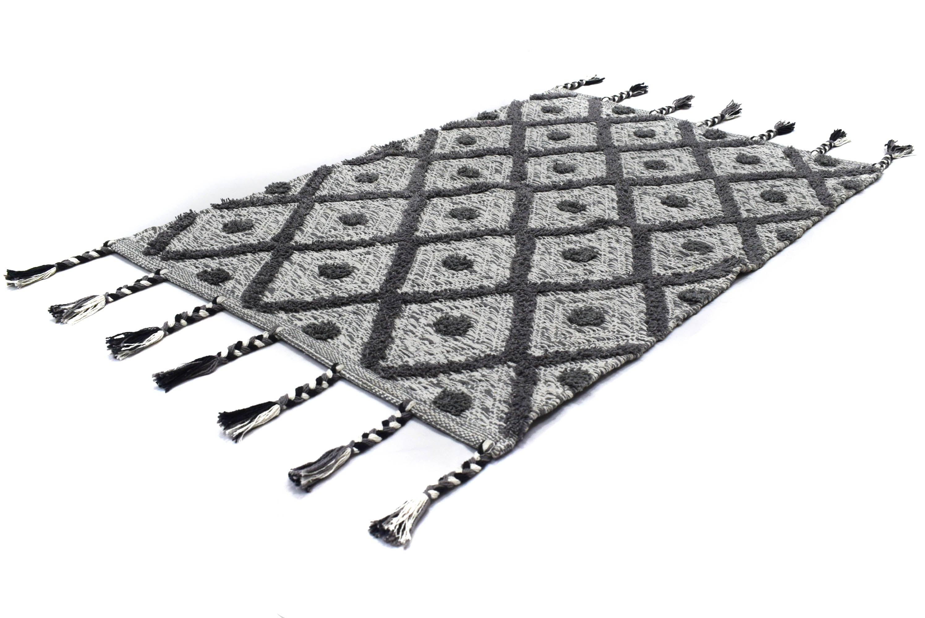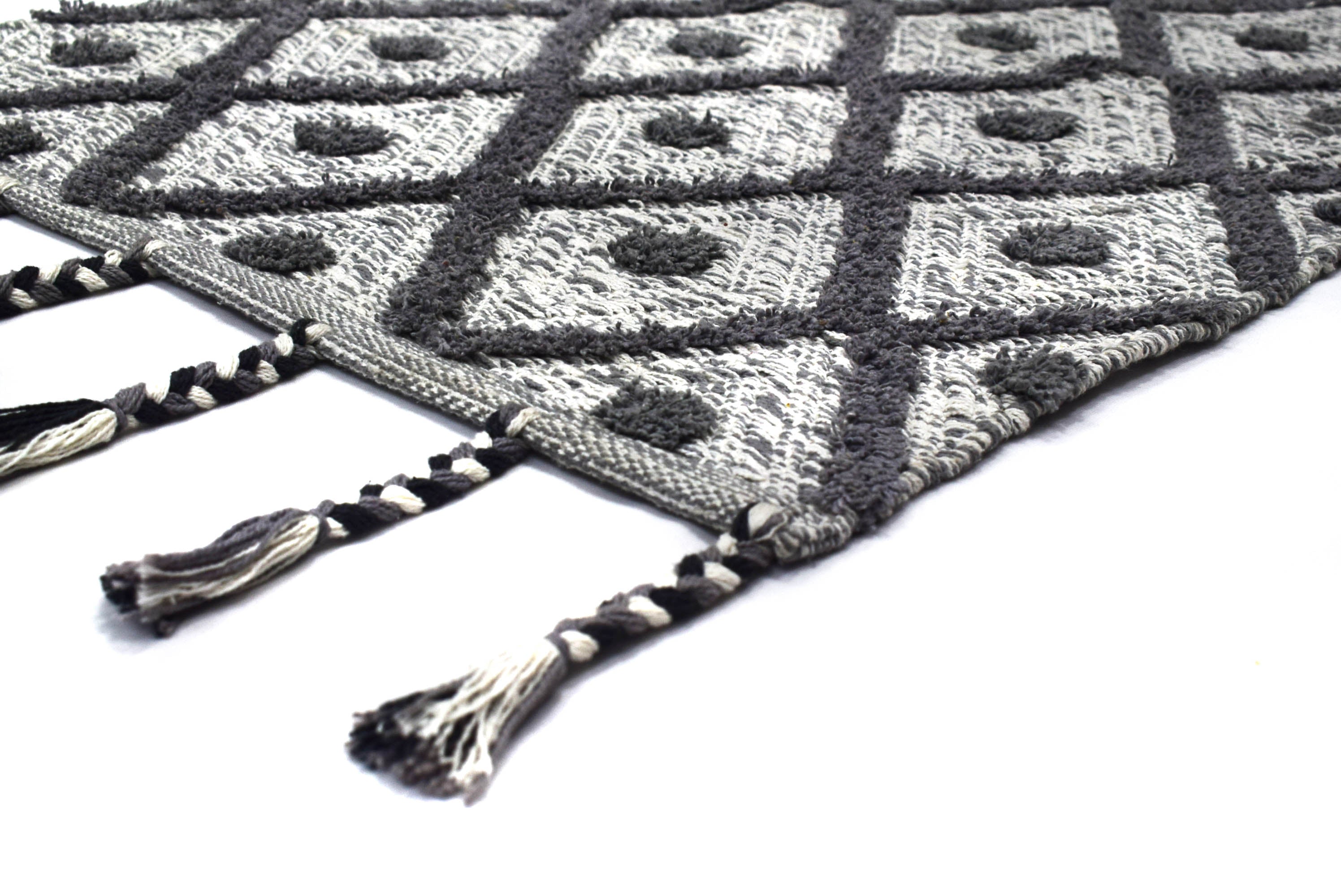 Alfombra de Algodón con Diamantes – Orilla Rematada con Borlas