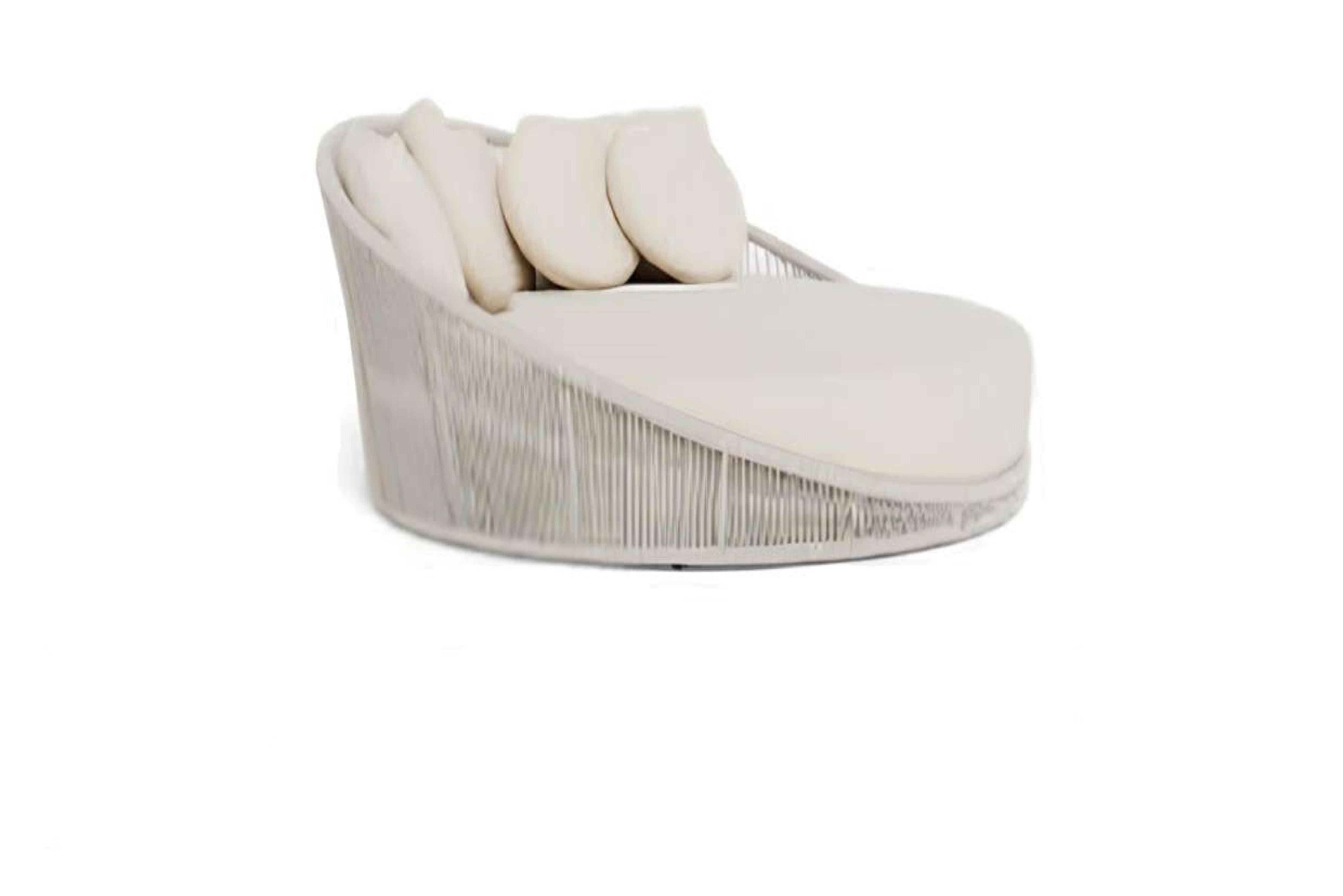 Relájate con el confort inspirado en la costa gracias a esta hermosa reposera de ratán tejido. Con una silueta baja y elegante y un acabado en suave tono blanco, incluye un cojín generosamente acolchado y cuatro cojines redondos para el respaldo que te envuelven en comodidad. Diseñada para descansar con estilo, su tejido aireado y su amplia superficie de asiento la convierten en una pieza destacada para cualquier patio, terraza techada, sala de sol o rincón interior.